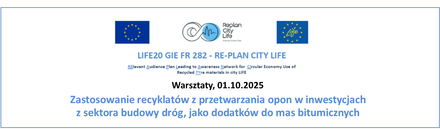 Warsztaty RE-PLAN CITY LIFE – Zastosowanie recyklatów z przetwarzania opon w inwestycjach z sektora budowy dróg, jako dodatków do mas bitumicznych – 01.10.2025