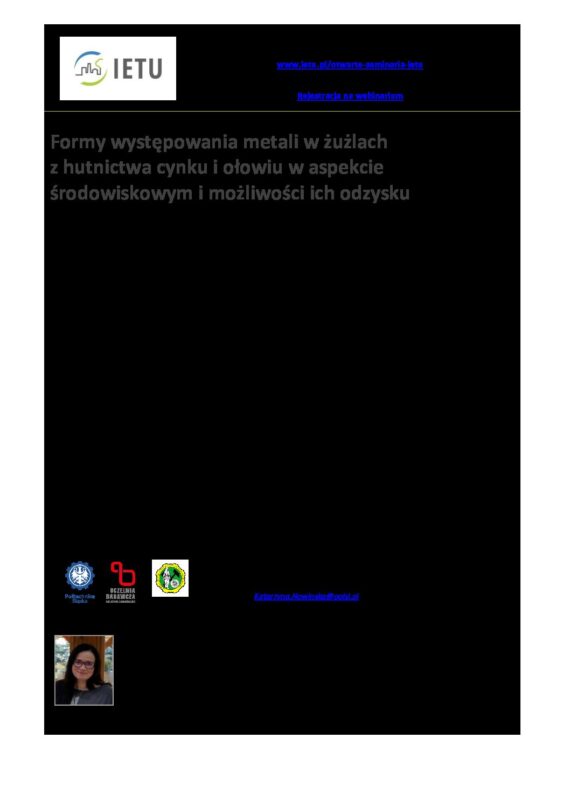 Zaproszenie na webinarium IETU – Formy występowania metali w żużlach z hutnictwa cynku i ołowiu w aspekcie środowiskowym i możliwości ich odzysku – 12.06.2025