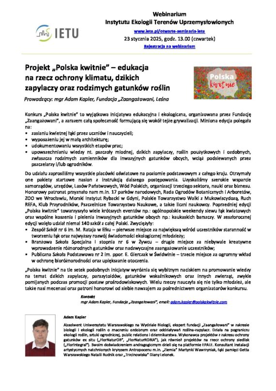 Zaproszenie na webinarium IETU – Projekt „Polska kwitnie” – edukacja na rzecz ochrony klimatu, dzikich zapylaczy oraz rodzimych gatunków roślin – 23.01.2025